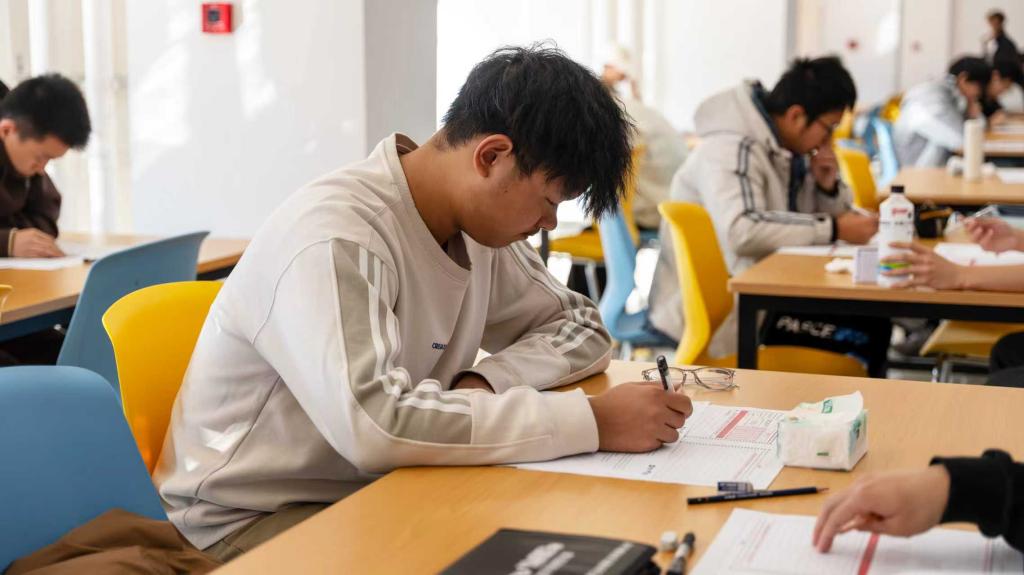 此次模拟考全程复刻真实考场:从试卷分发、听力播放到答题卡收交,均按照官方考试流程执行;考场内设置时钟提示时间,监考人员严格维护纪律,让学生沉浸式体验考试氛围。考场上,学子们专注答题,听力环节紧盯耳机、笔速不停,阅读与写作环节则时而皱眉思考、时而提笔书写,整场考试秩序井然。