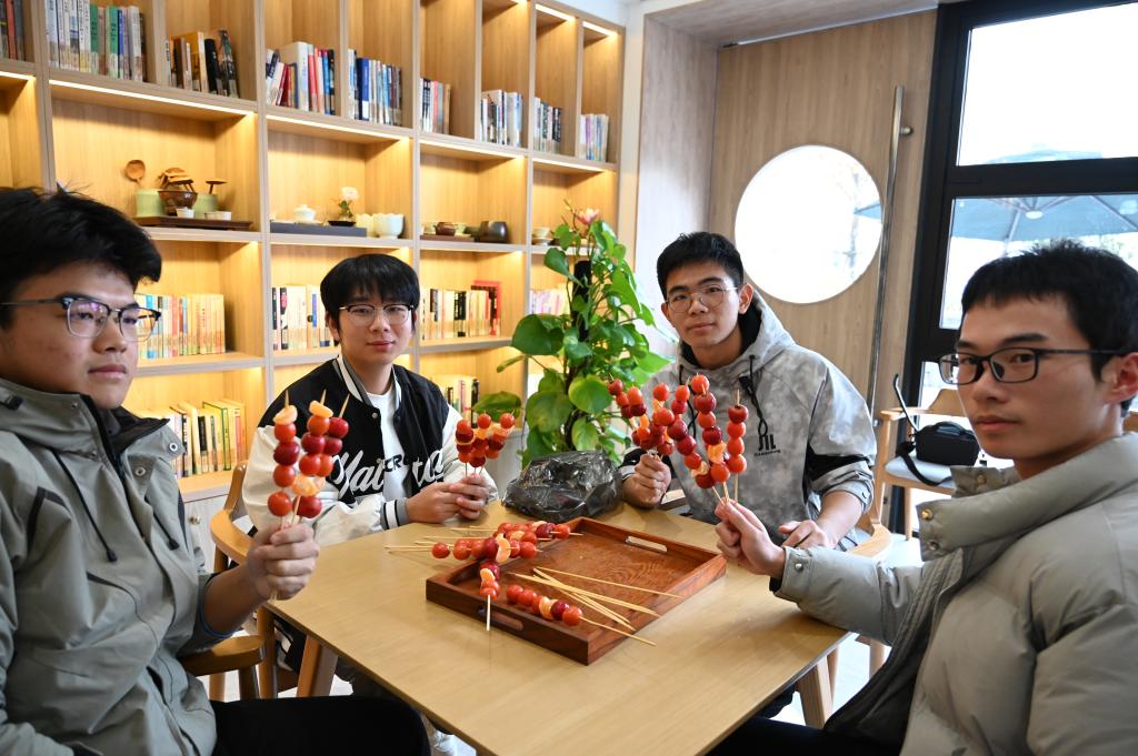 2025年12月4日,大雪节气前夕,翠竹书院在新竹文化社区举办传统美食糖葫芦制作体验活动。25名同学亲手制作晶莹剔透的糖葫芦,在熬糖、串果的暖意互动中,既品味了冬日节气的甜蜜滋味,也加深了同学间的情谊,弘扬了传统文化。