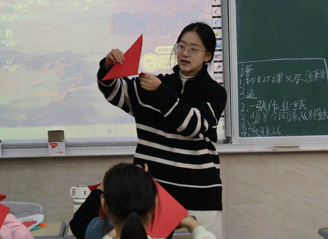 在剪纸课堂上,五颜六色的卡纸在孩子们手中绽放出各种形状。随着剪刀一开一合,纸张变成了可爱的灯笼、乖巧的小动物,这些都是孩子们对世界最纯真的印象。有同学表示,“剪纸课也太好玩啦!老师带着我们折折剪剪,跟着步骤一步步探索,越剪越觉得有意思,手里的剪刀都像在跳舞!现在我拿起剪刀就超有信心,感觉自己超厉害的!”一堂剪纸课带给了同学们成就感和对传统工艺的喜爱!
