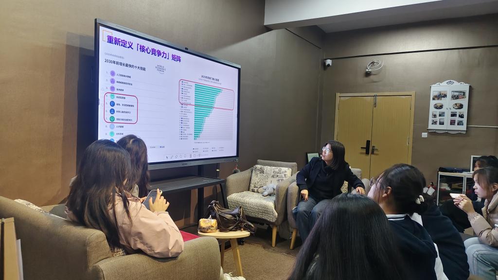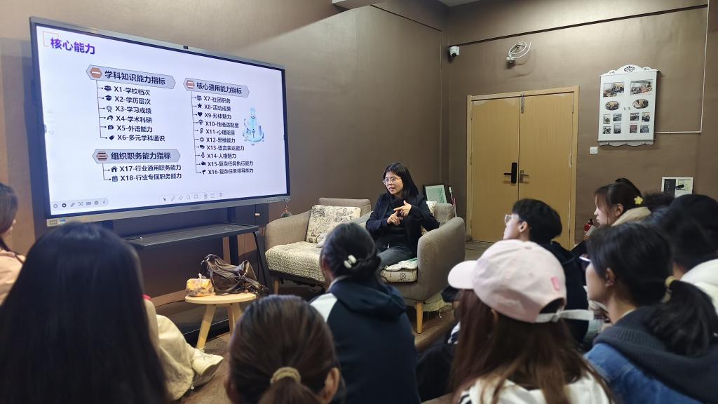 老师还从政策文件和咨询报告中拆解行业风向,关注“专精特新”中小企业的发展机会,分析不同职业的核心能力要求,给出针对性的成长建议;同时结合AI工具的应用场景,讲解如何借助AI优化职业探索路径,从创新创业大赛等实践中找准职业方向。