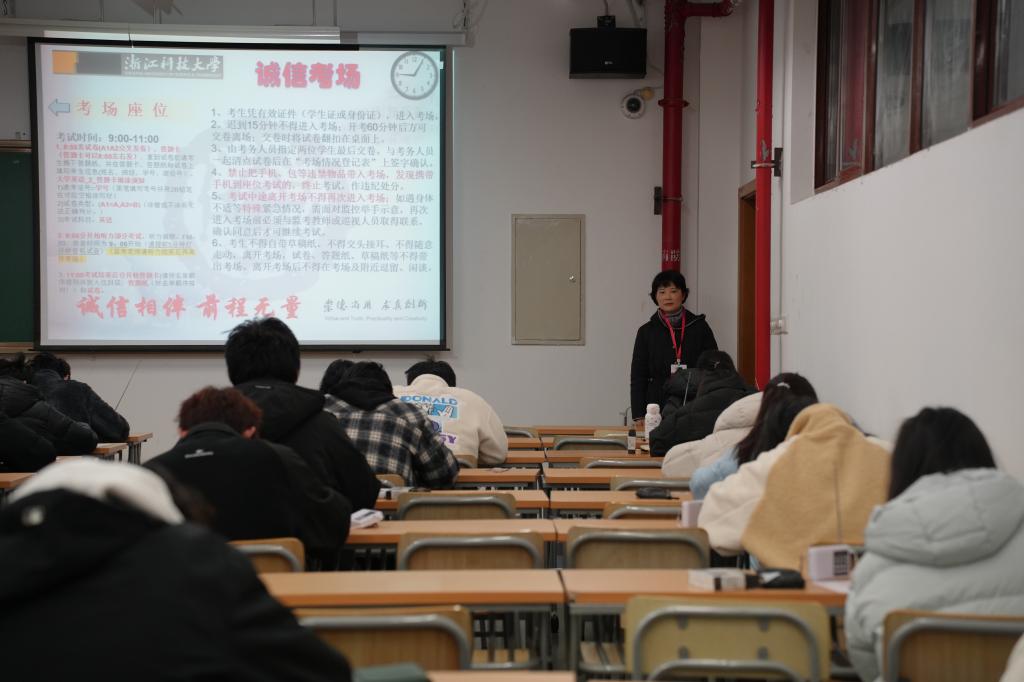 1月19日,安吉校区2025-2026学年第一学期期末考试周正式开启。为保障考试工作规范有序开展,校党委委员、副校长陈平带领校区相关部门负责人深入考场,巡视期末考试组织情况。