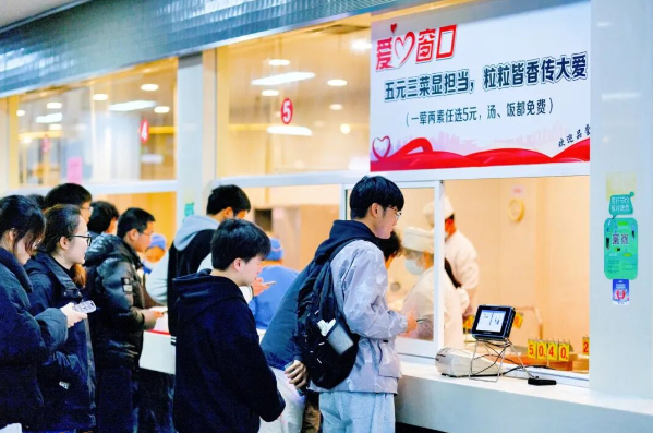 在食堂二楼设立“爱心窗口”,为经济困难学生提供价格实惠、品质优良的餐食服务,有效减轻其经济负担,保障营养均衡膳食,进一步营造校园互助关爱的良好氛围。