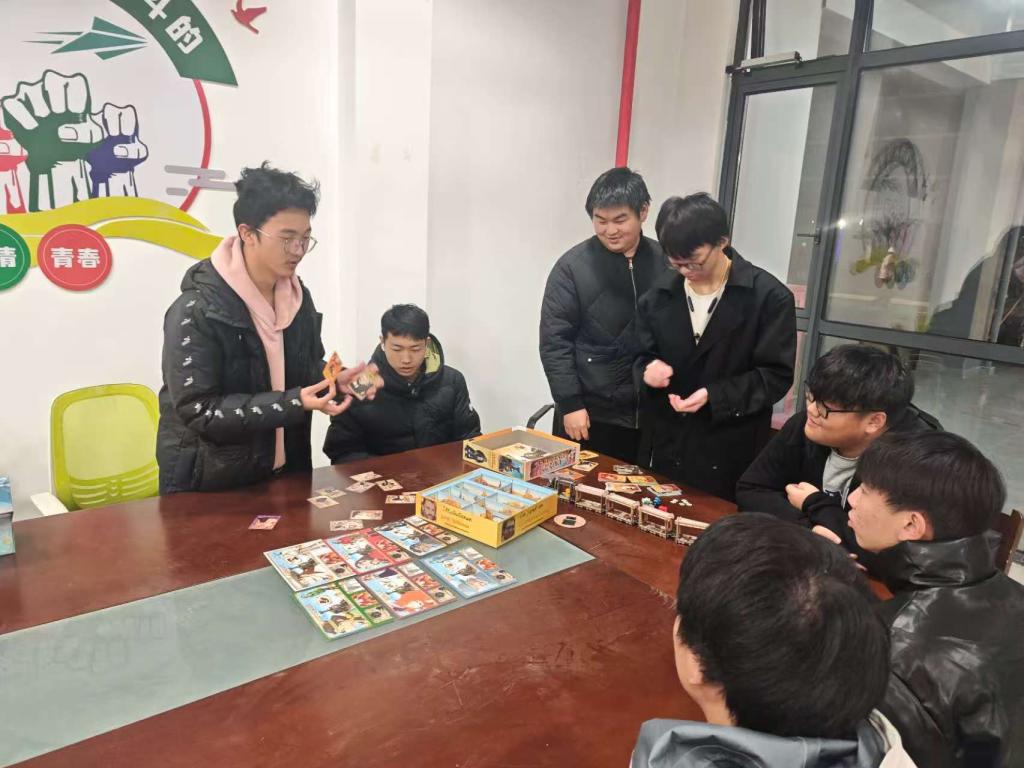 活动现场摆放了三国杀、狼人杀、大富翁等多款经典桌游,同学们自由组队参与。在机械专业的学习中,学子们长期面对复杂的图纸设计、公式演算,而桌游活动让大家暂时放下书本,在逻辑推理、团队协作的游戏互动中放松身心。狼人杀游戏里,同学们凭借语言表达和逻辑分析展开博弈;大富翁的趣味闯关则让现场笑声不断,原本因期末复习略显紧张的氛围被欢乐取代。